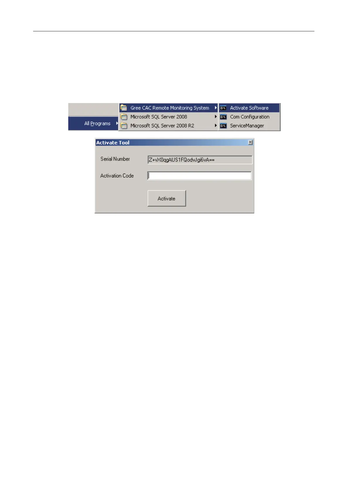 Choose ―Start‖ -> ―All Programs‖ -> ―Gree CAC Remote Monitoring System‖ -> ―Activate Software‖