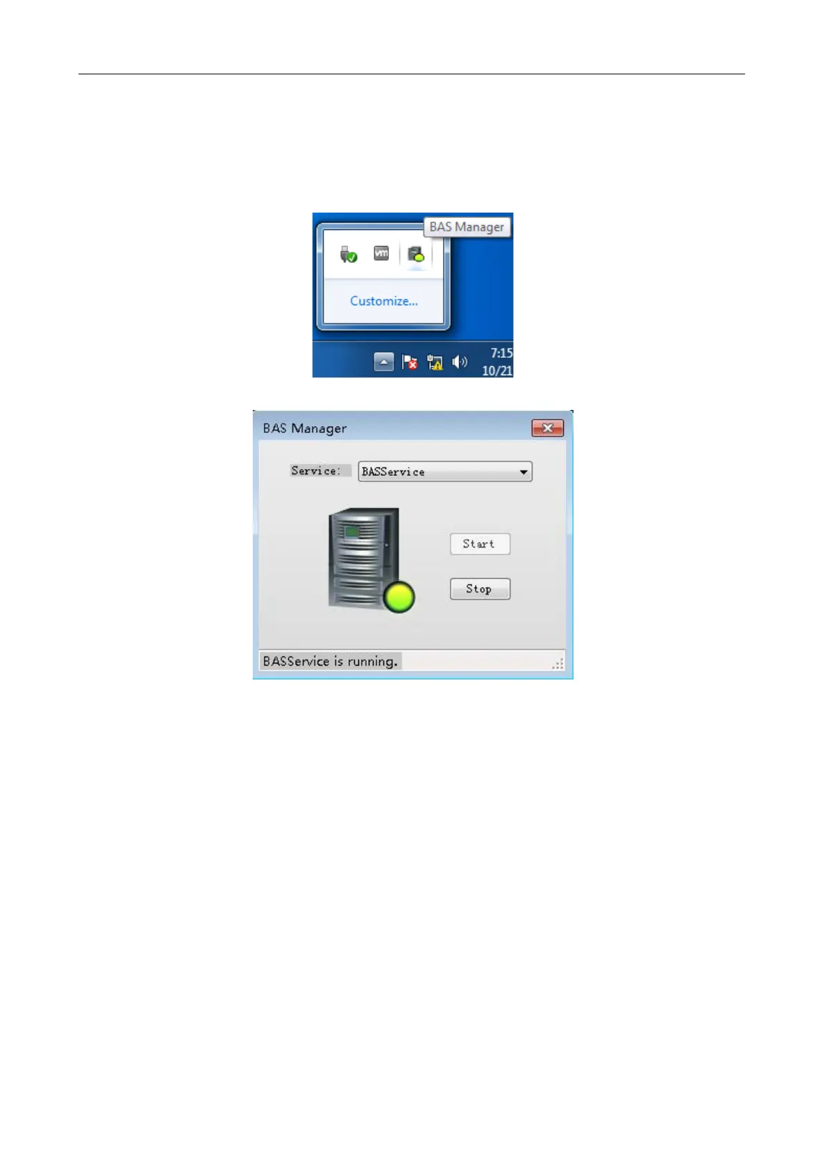 In the displayed ―BAS Manager‖ window, click ―Start‖ to enable BAS Manager.