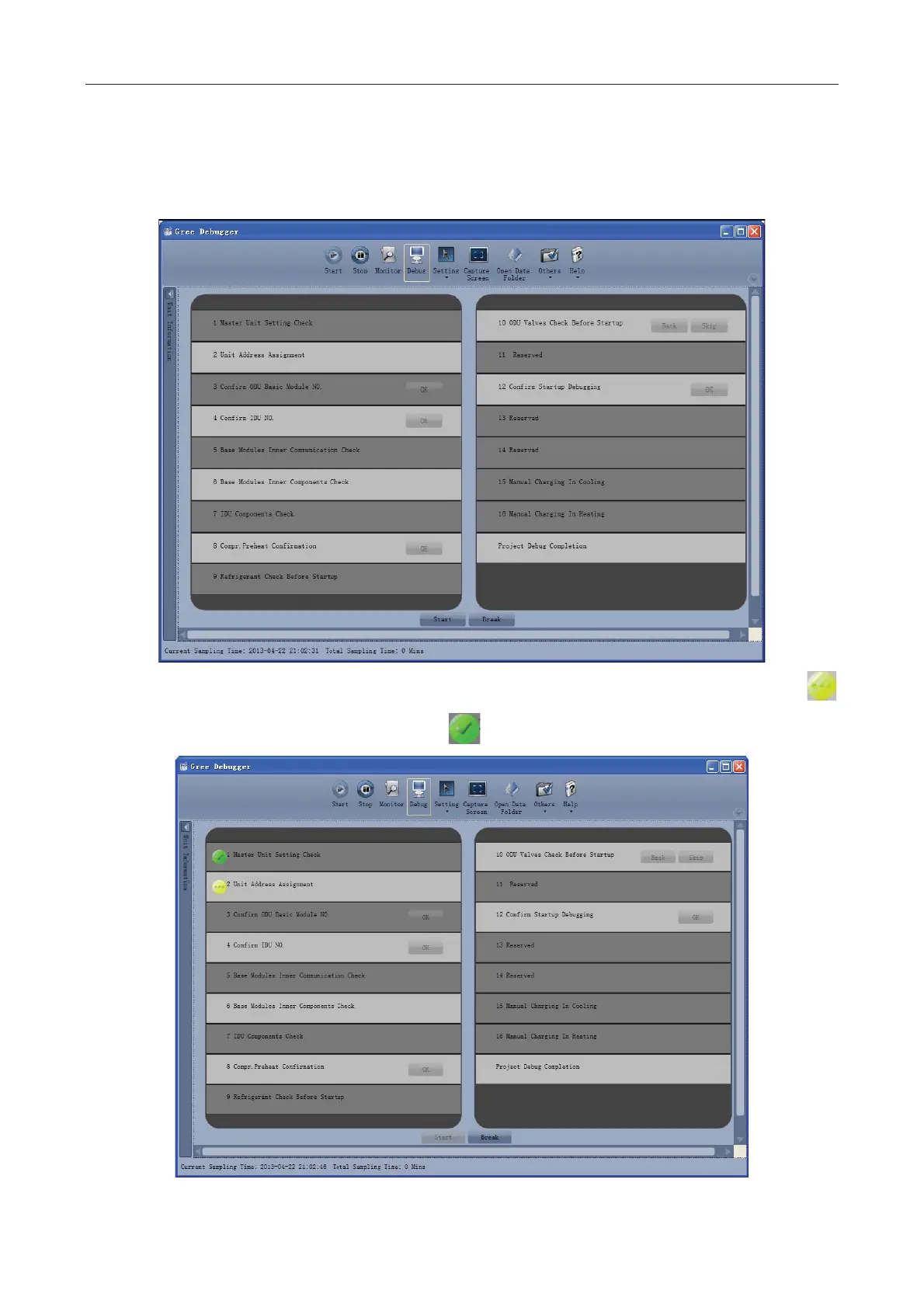 z Click “Start” to enable the debugging function. Then debugging will be started up automatically.
