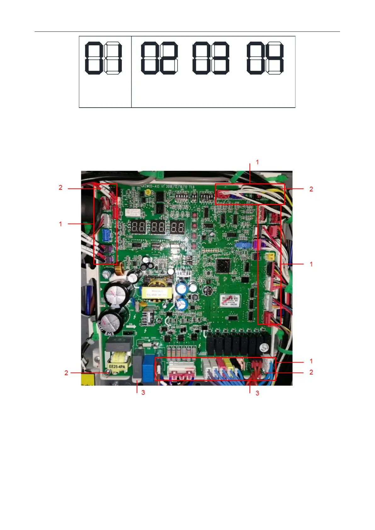 Disconnect all the plugs in the areas marked by 1 from the main board.