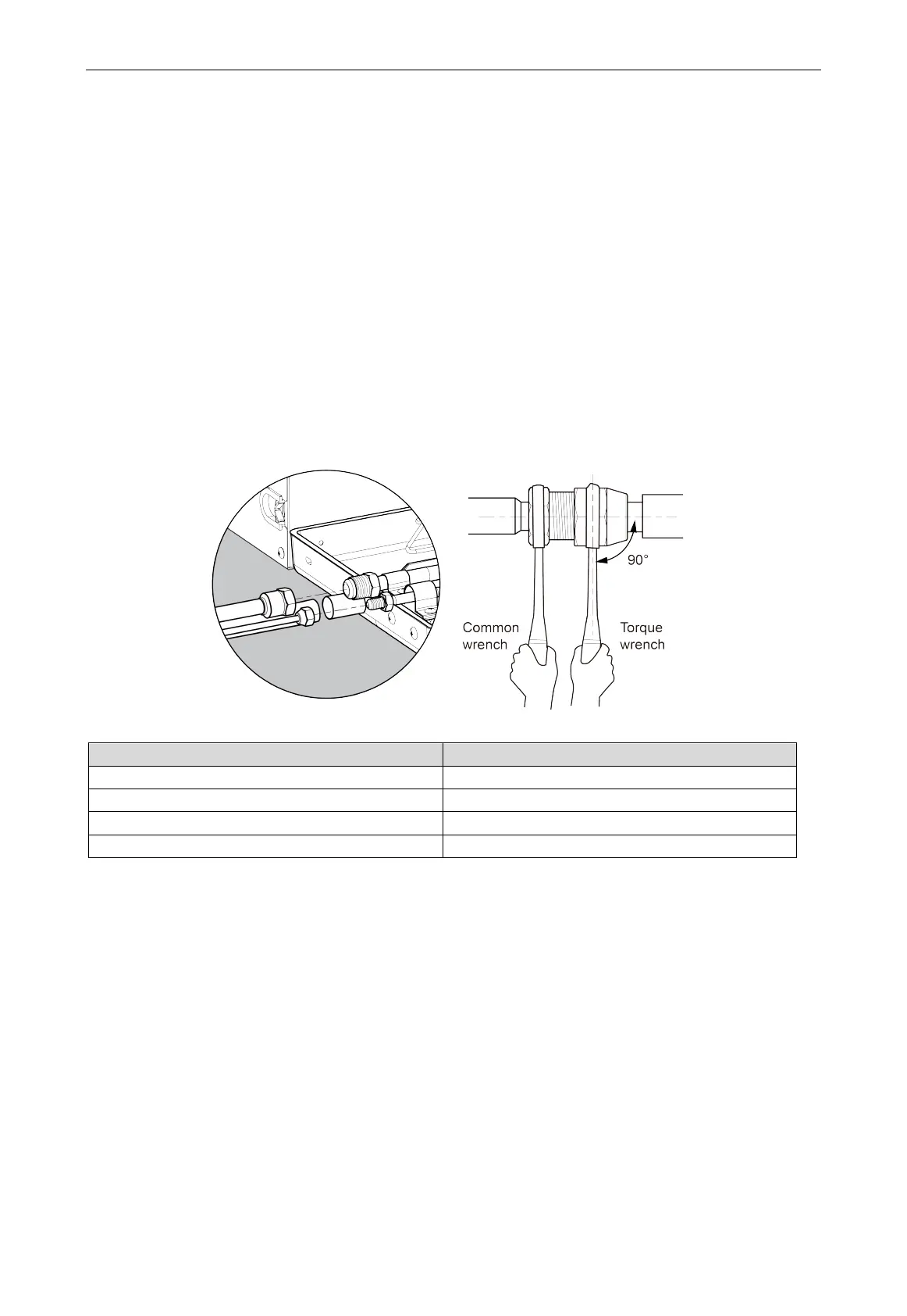 (3) Use torque wrench to twist on the flared nut tightly until the wrench gives out a click sound
