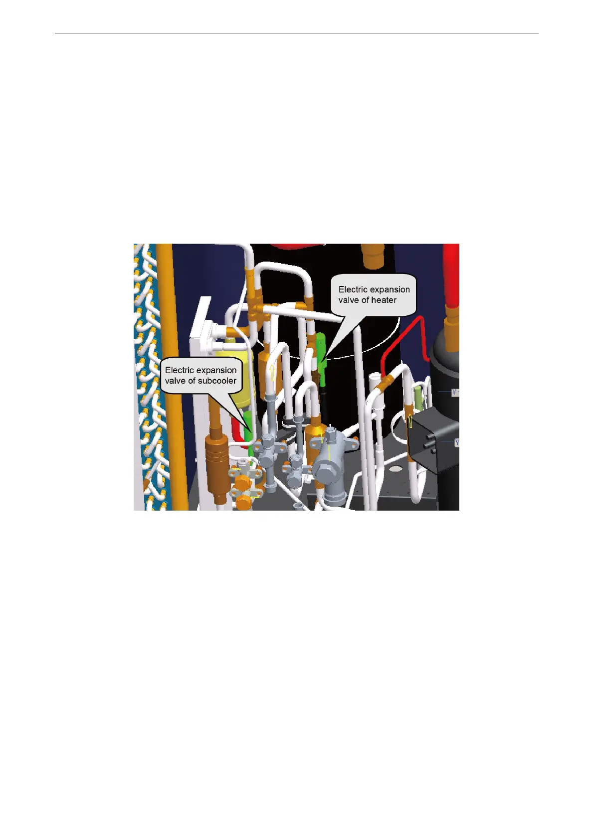 ① Electric expansion valve: This valve will reset for each power-on or power-off action. Touch the