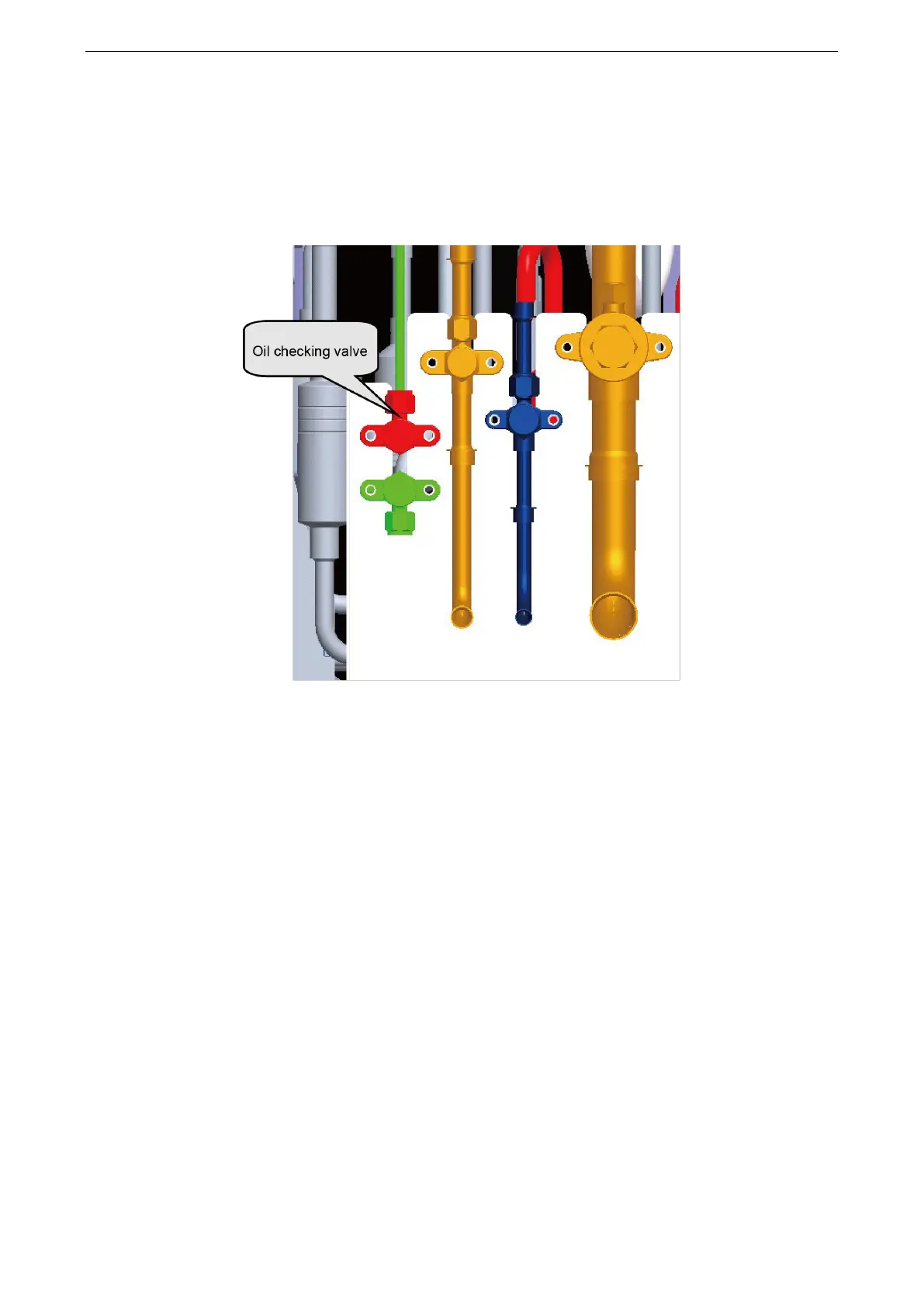 rubber hose to the oil checking valve at one end and a glass container at the other end. Open the oil