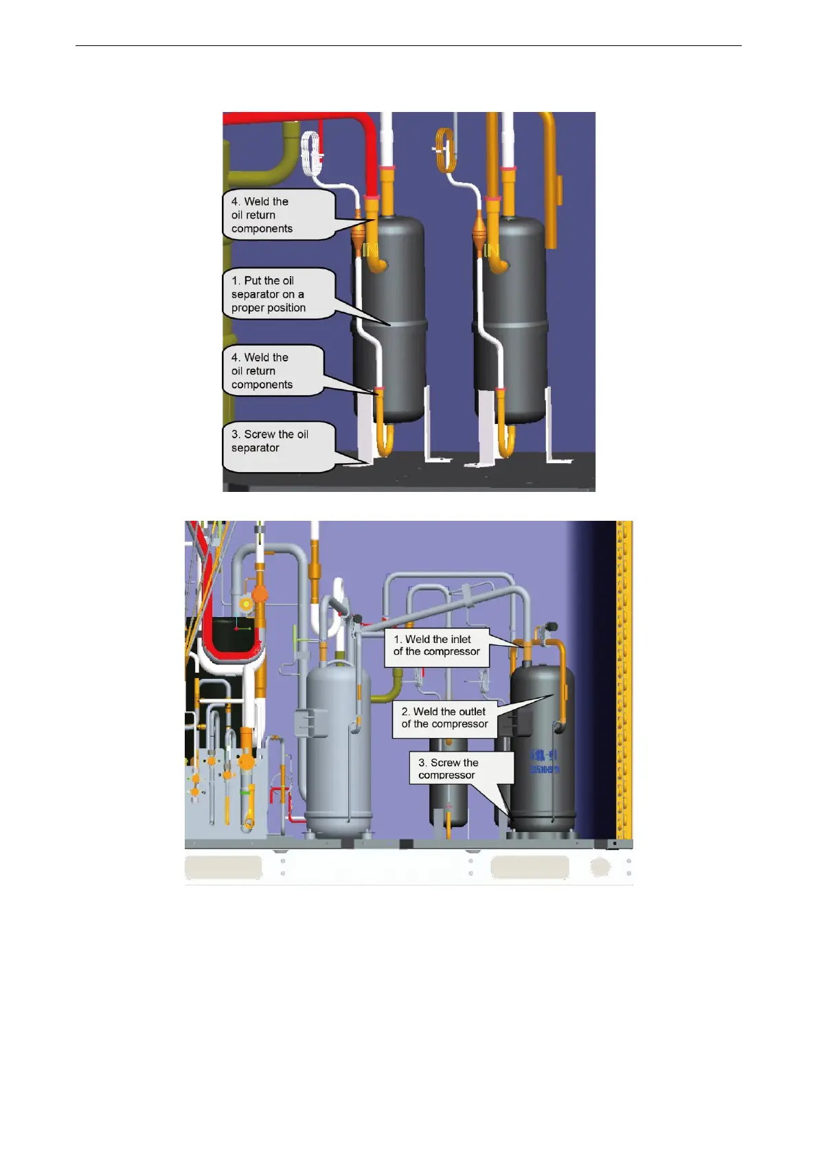 corresponding pipes. During welding, charge nitrogen into the pipes. Since compressors’ suction
