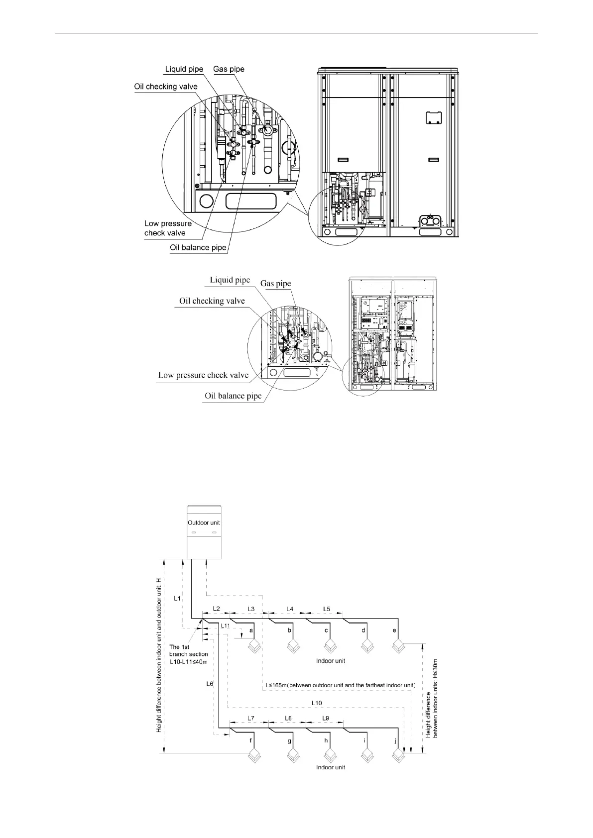 Y type branch joint is adopted to connected indoor and outdoor units. Connecting method is shown
