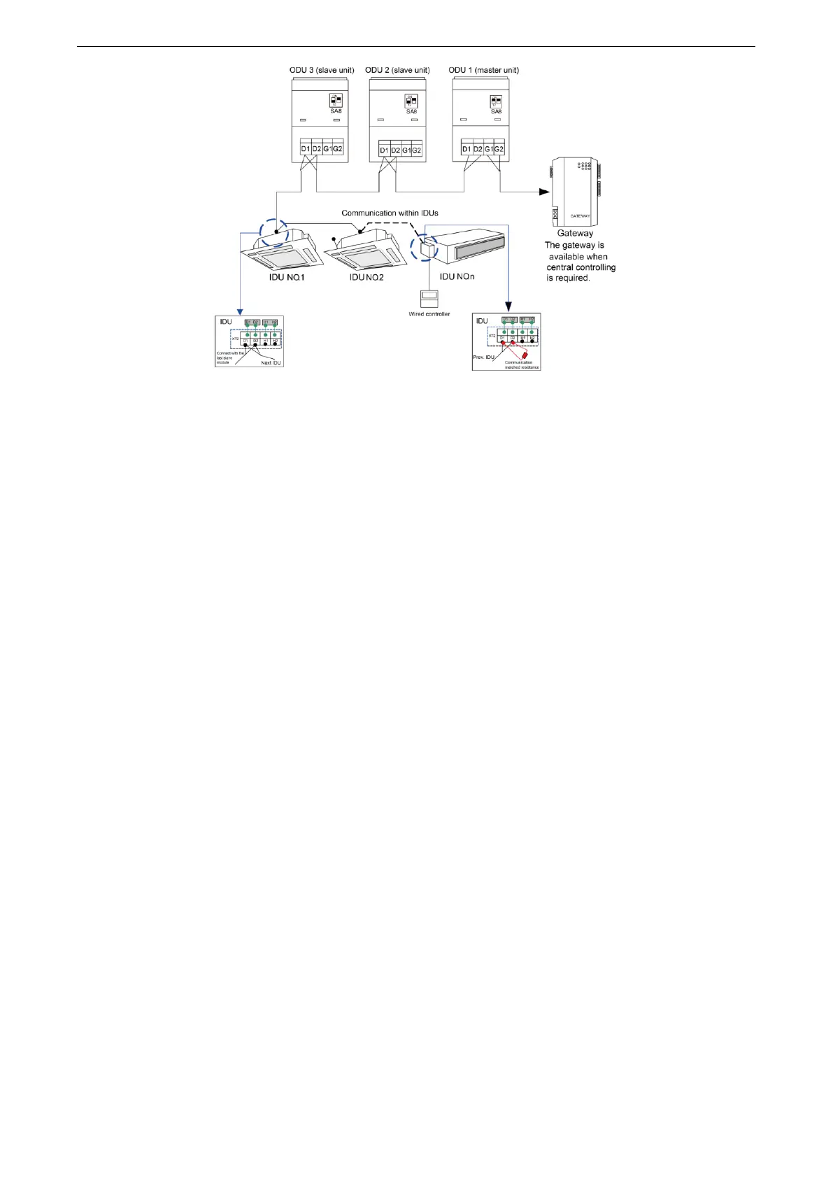 b) If there are multiple modules for the modular ODU, the IDU must be connected to the slave