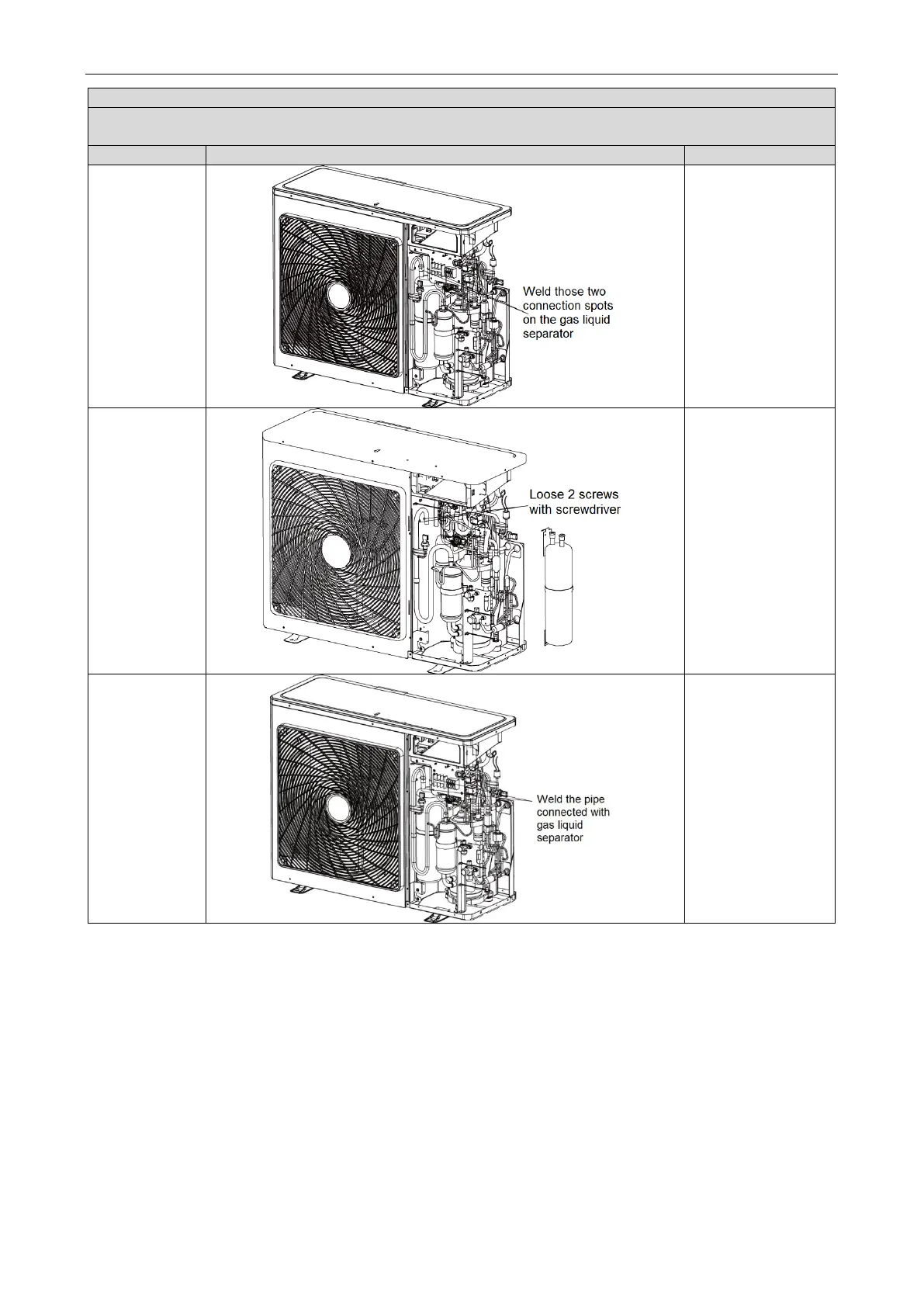 Remark: Before removing the gas liquid separator, please make sure that there’s no refrigerant inside the pipeline of