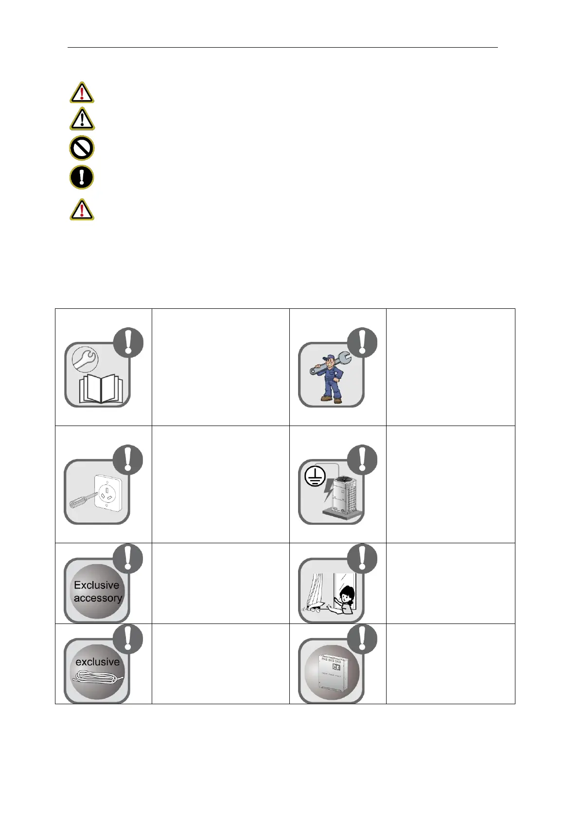 Warning: If not abide strictly, it may cause severe damage to the unit or the people.