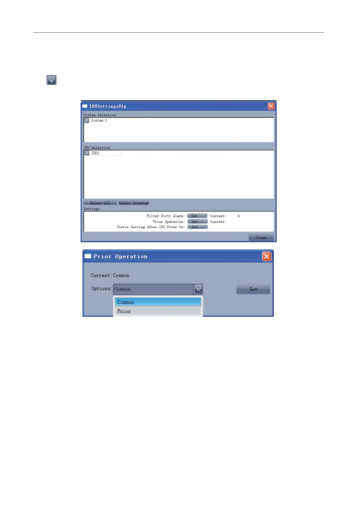 z Tick the indoor units that need setting in the IDU selection zone or you may click “Select All” to