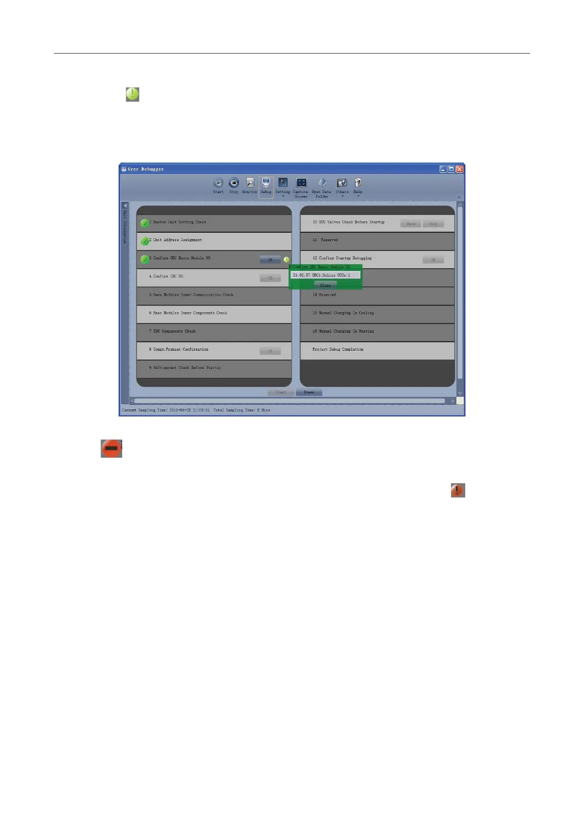 z If “OK” button is displayed, it means user needs to judge whether to continue debugging or not.