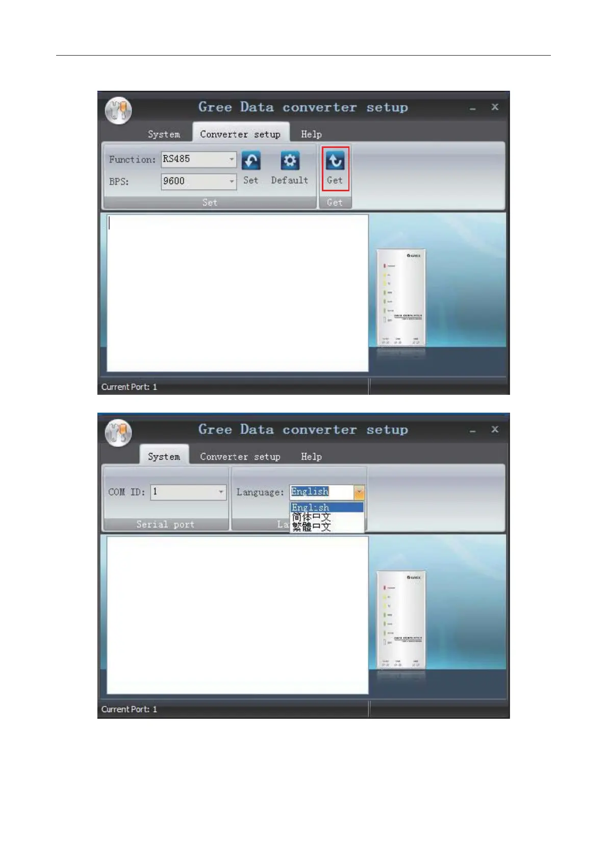 z Click “Get” to get the current setting details of converter.
