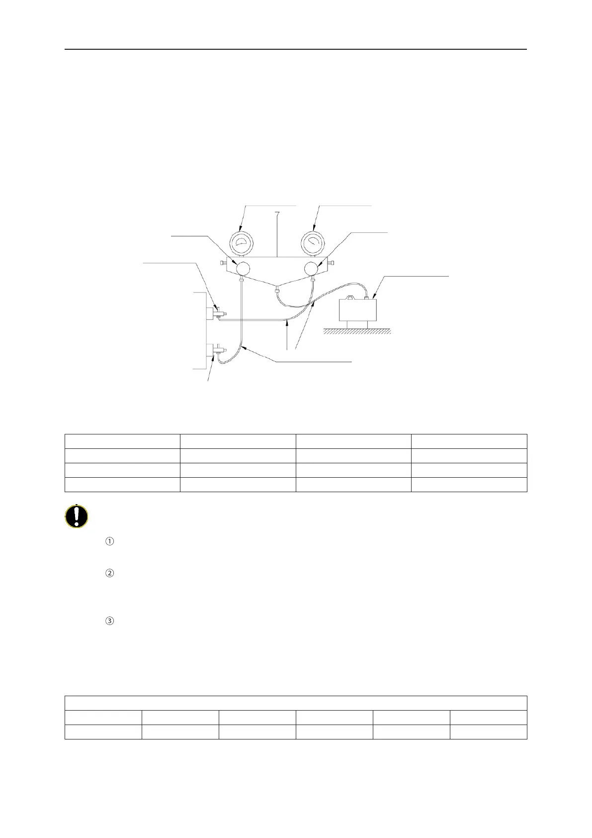 (3) Utilisez une pompe à vide pour retirer l’air à l’intérieur de l’unité intérieure et le tuyau de rac-