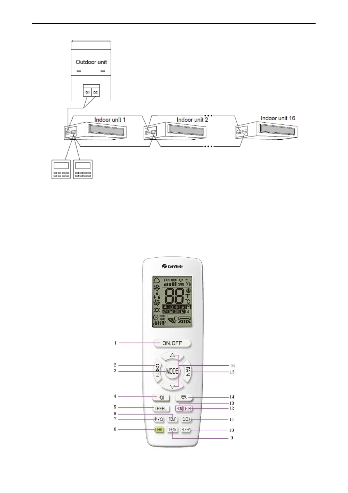 Fig.2.10 Two wired controllers control multiple indoor units simultaneously