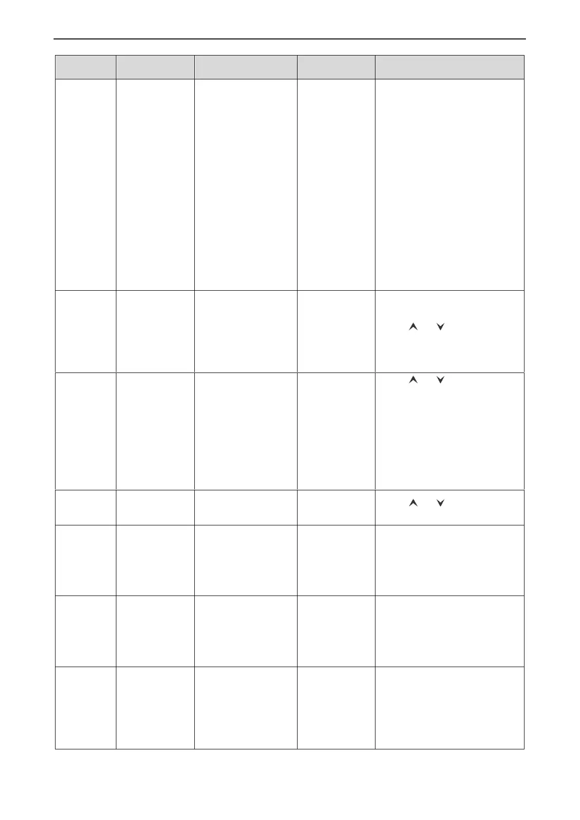 user functions (factory setting