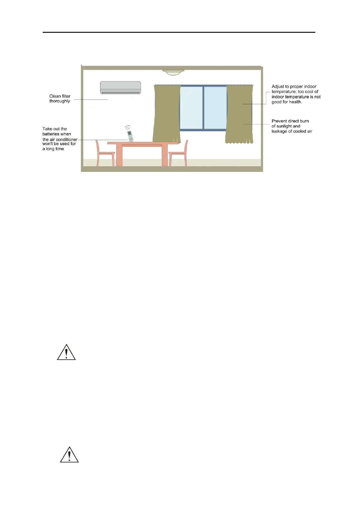 When the air conditioner is running, don’t open windows or doors for long time, otherwise