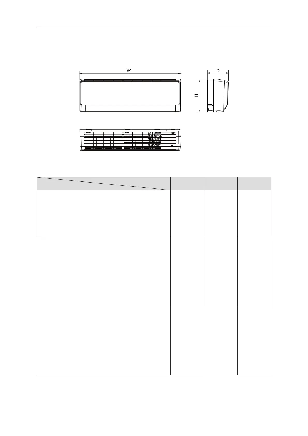 Vous trouverez ci-dessous les dimensions de W, H, D etc. pour différents modèles :