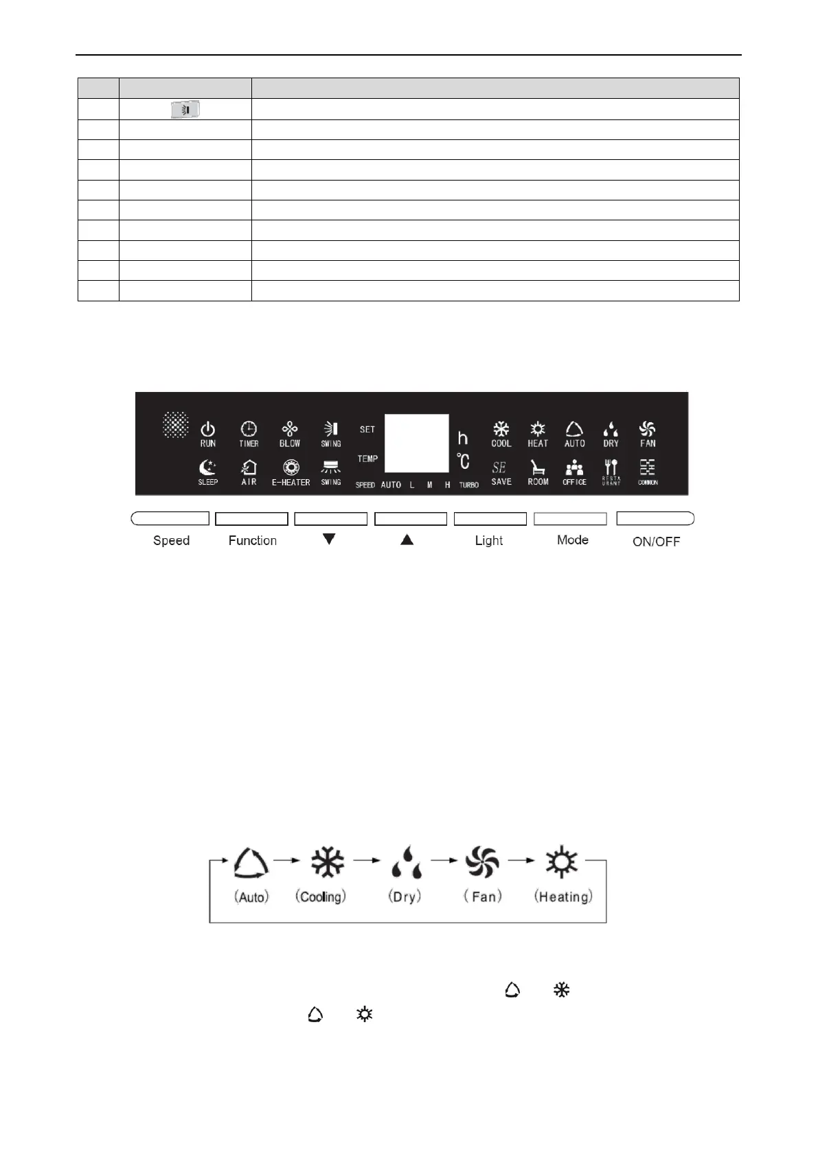 Under power-on status, each time press Mode button, the mode will be switched according to the