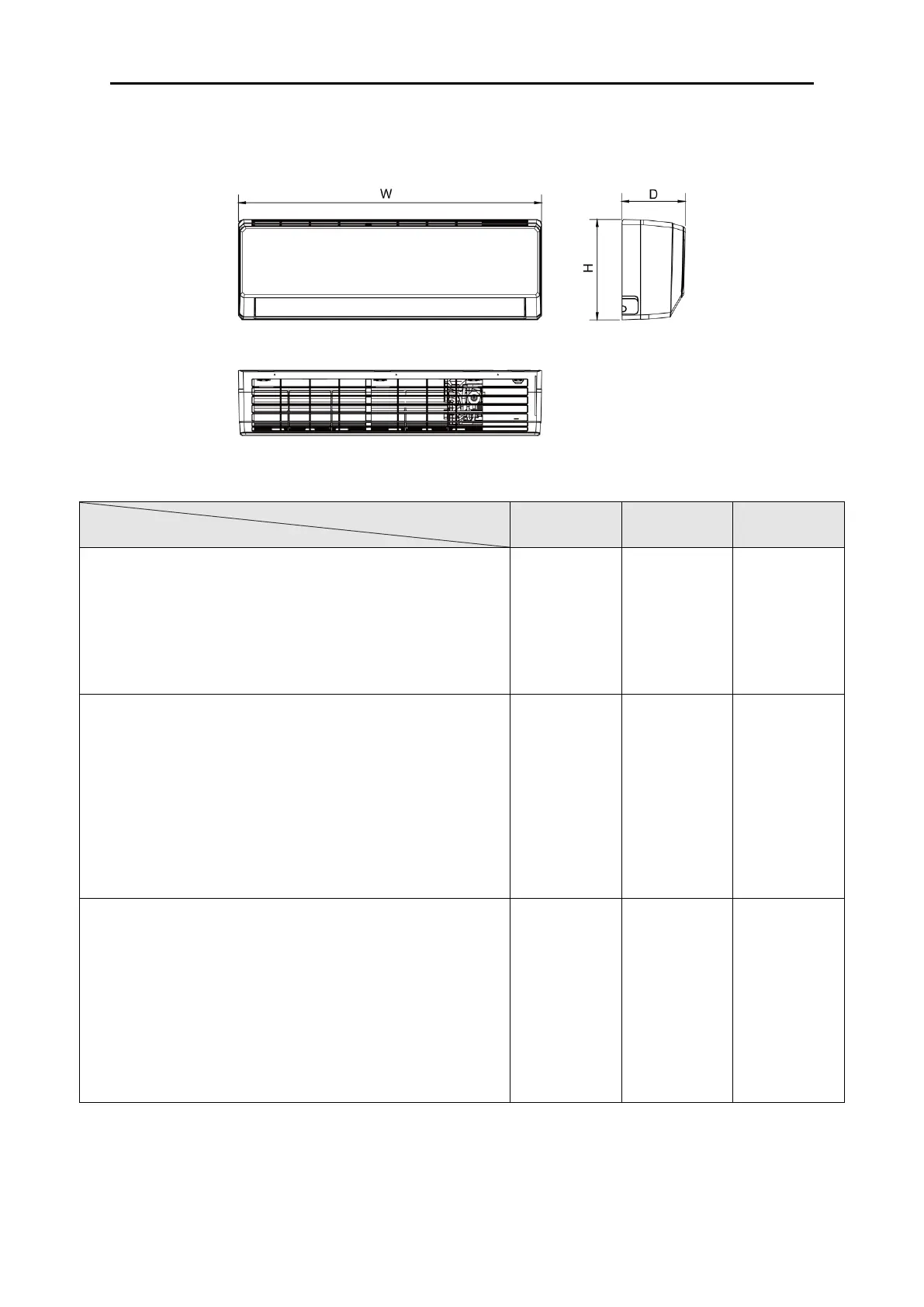 Below are dimensions of W, H, D for different models: