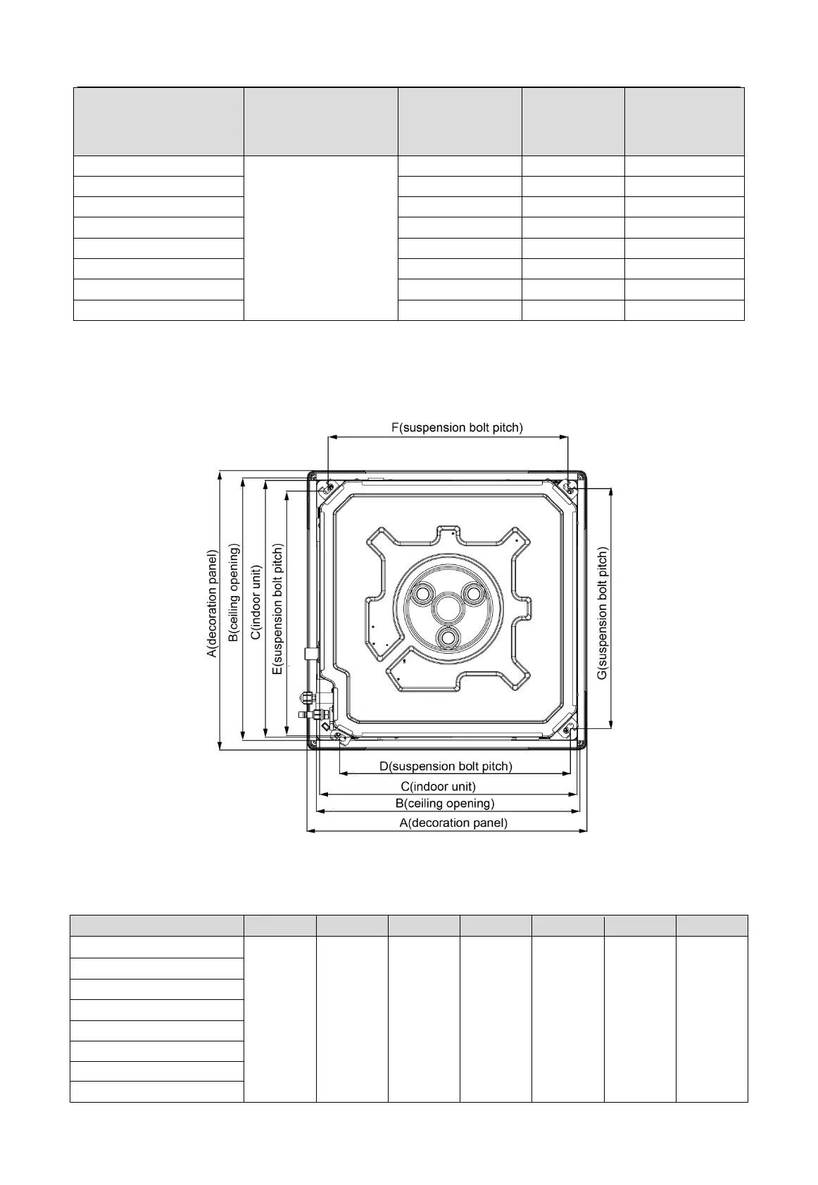 4.1.1 Indoor Unit Dimension and Suspension Bolt Position