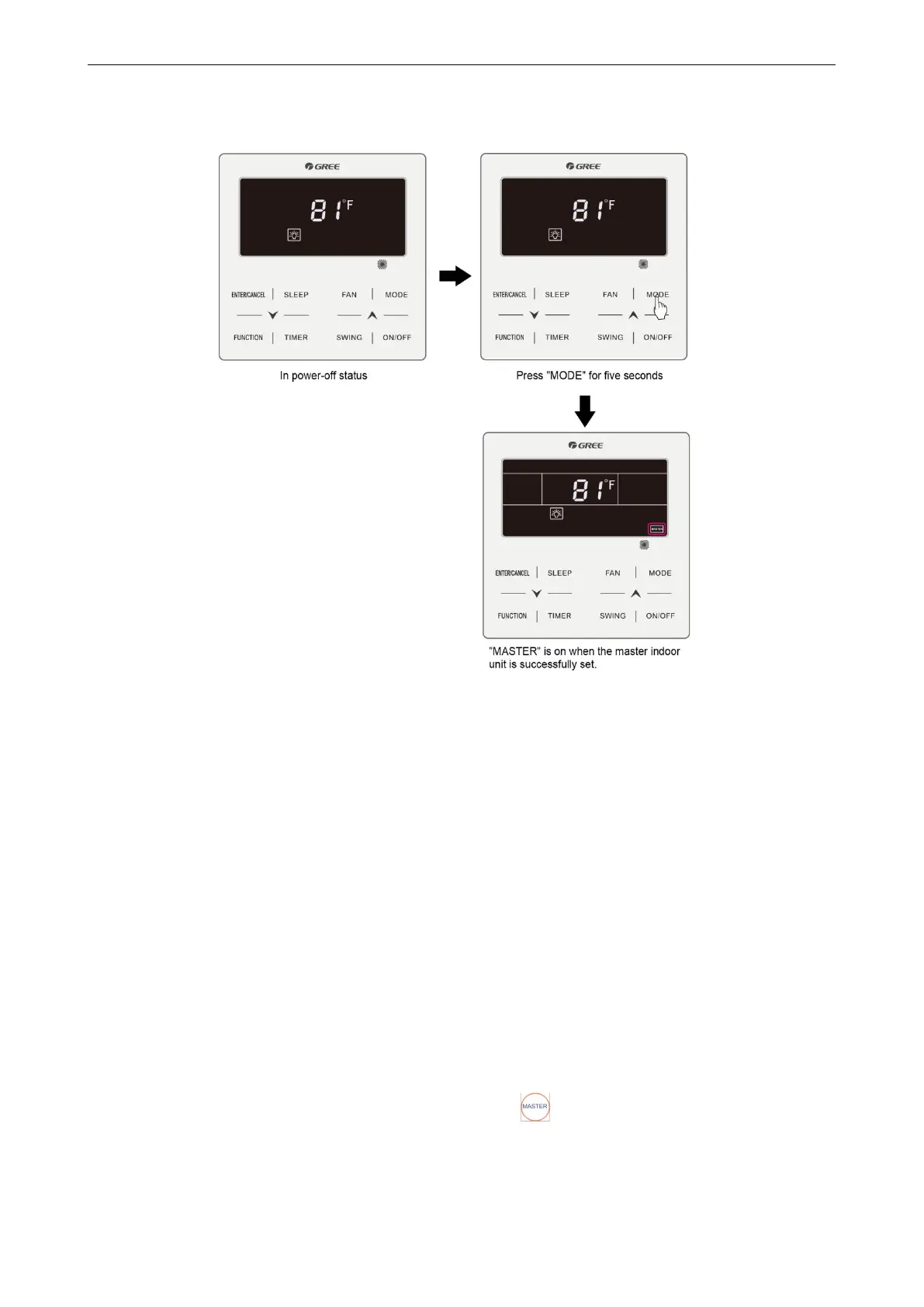 NOTICE! After the master IDU is successfully set, stick the “ ” flag to the wired controller or unit panel