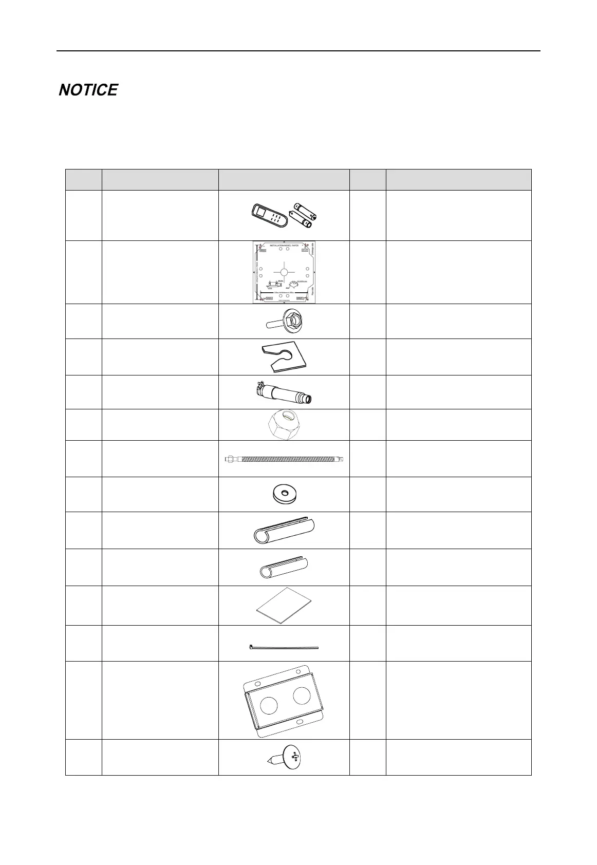 Please use the supplied standard fittings listed below as instructed.