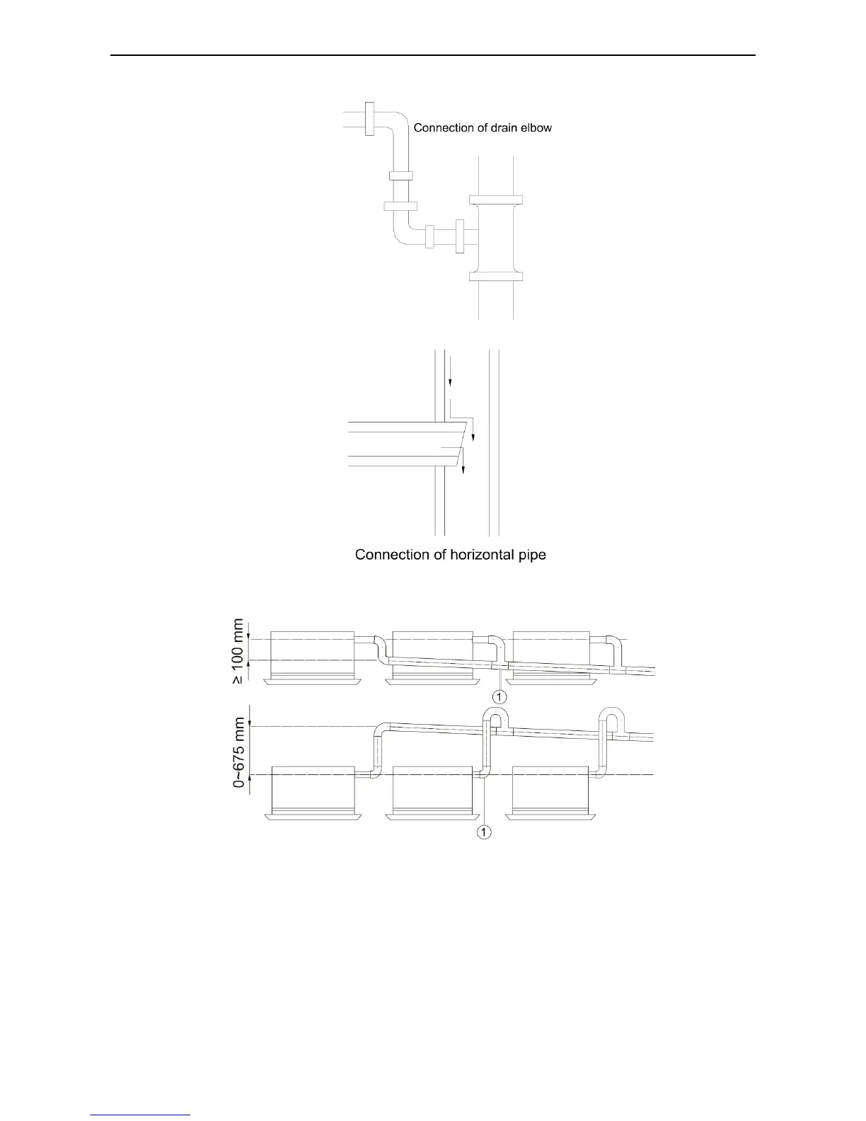 When unifying multiple drain pipes, install the pipes as shown below. Select converging drain pipes