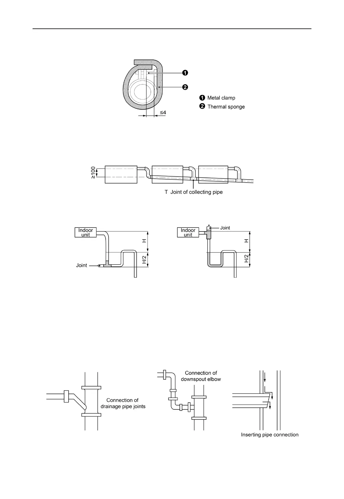 (4) When connecting several drain pipes, follow the instruction as indicated in Fig.4.3.4. Choose