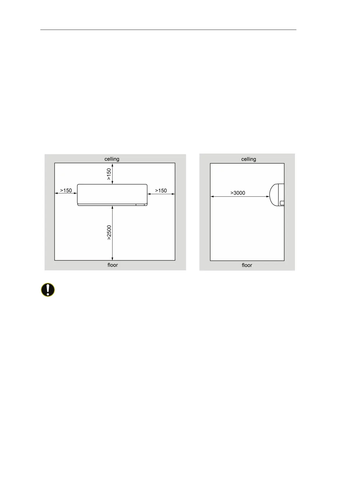 (2) The indoor unit should be installed at 2.5m or higher above the floor.