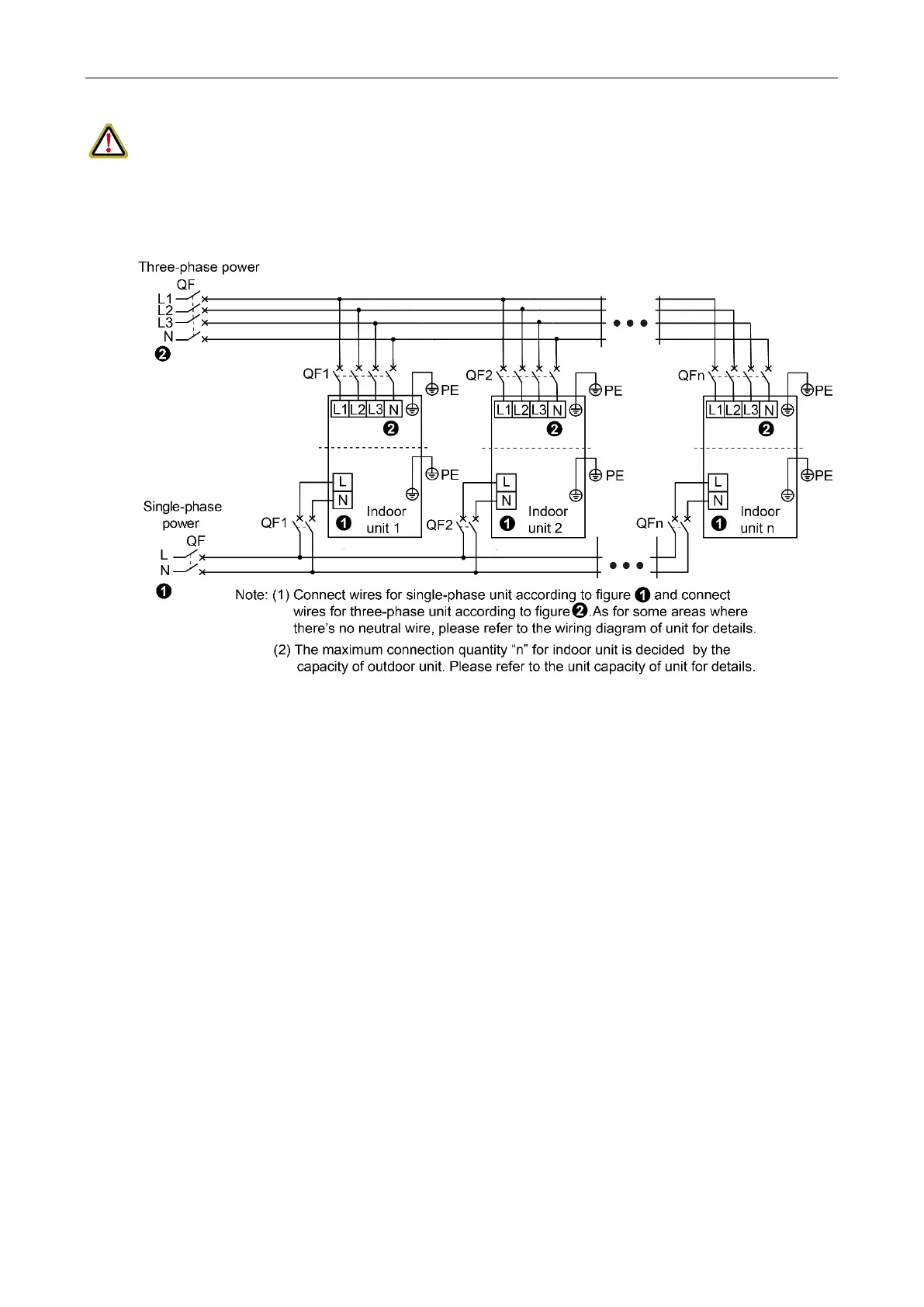 ① Every unit should be equipped with a circuit breaker for short-circuit and overload protection.