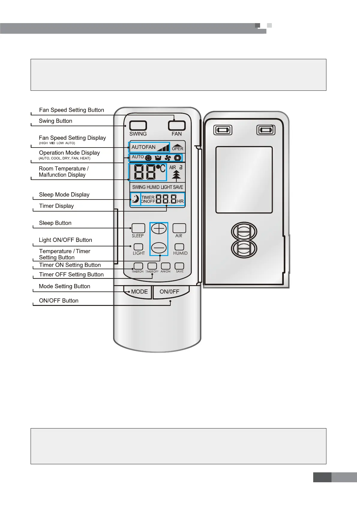 1) Press the ON/OFF button after the unit is energized, then the unit starts operating.