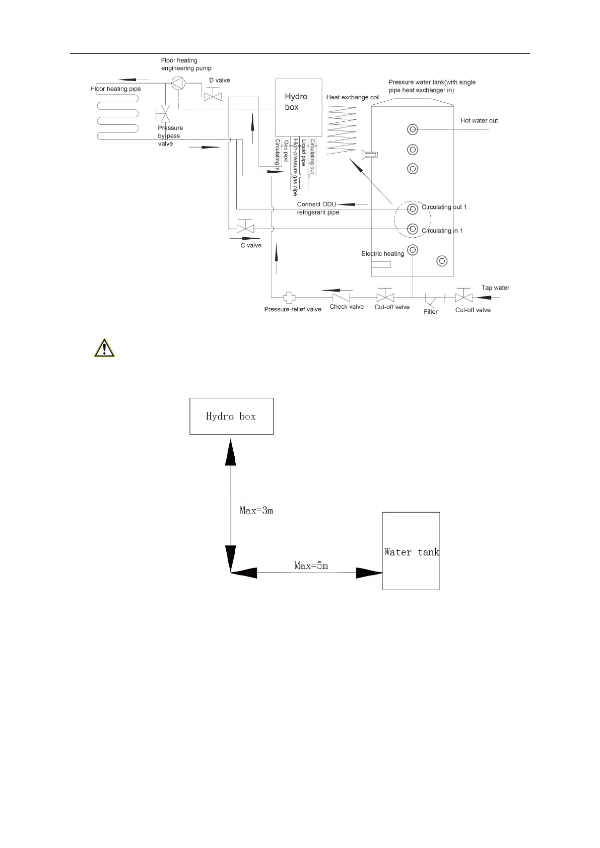 1. The horizontal distance between hydro box and thermal insulation water tank shall not