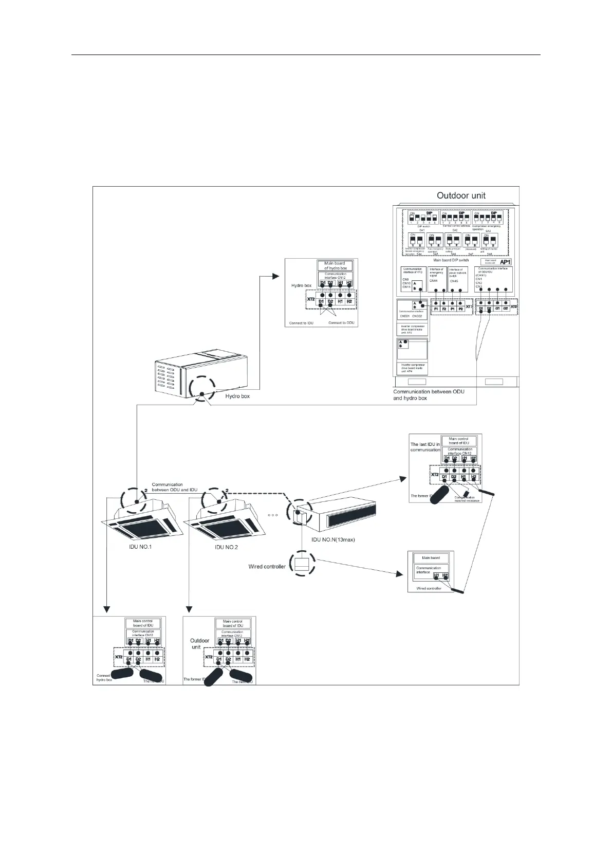 electric box from the hole. Connect the wires of ODU, IDUs and hydro box according to the wiring