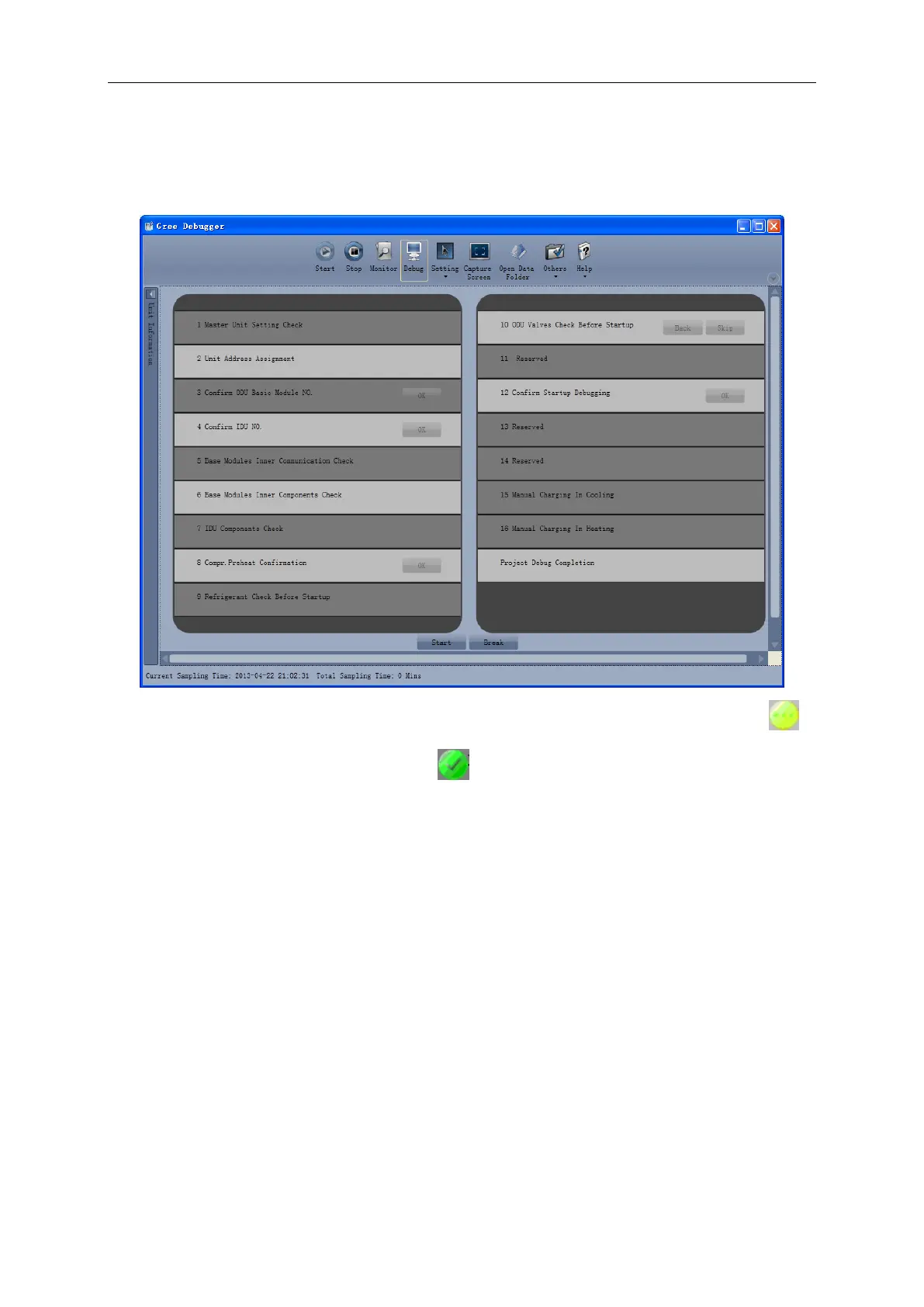 Click ―Start‖ to enable the debugging function. Then debugging will start automatically.