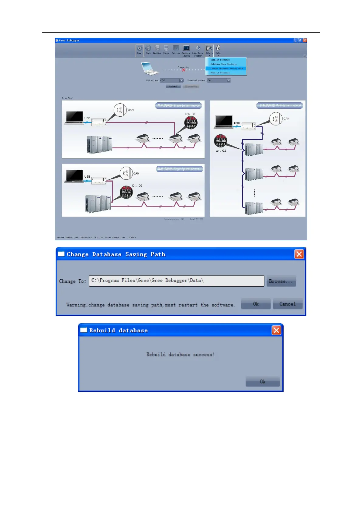 Gree commissioning software should be connected with CAN interface when converter is