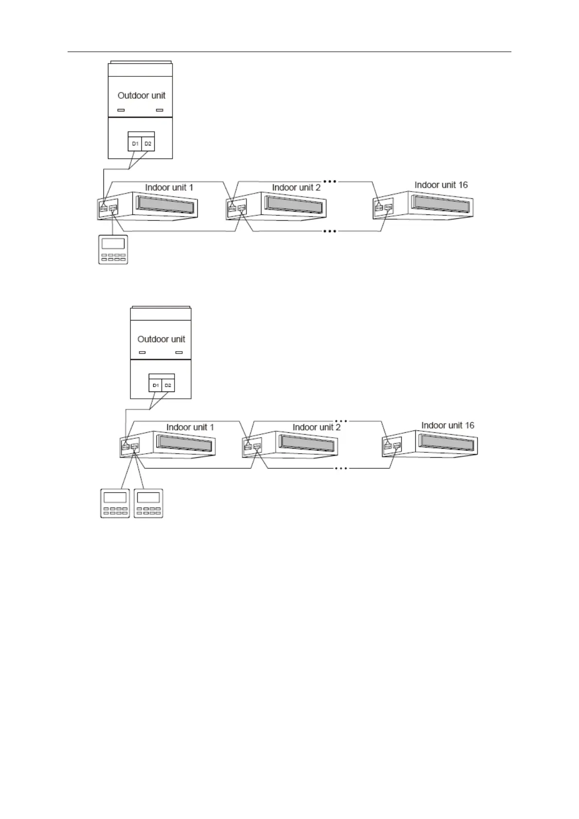 (3) When two wired controllers control multiple indoor units, wired controller can connect to