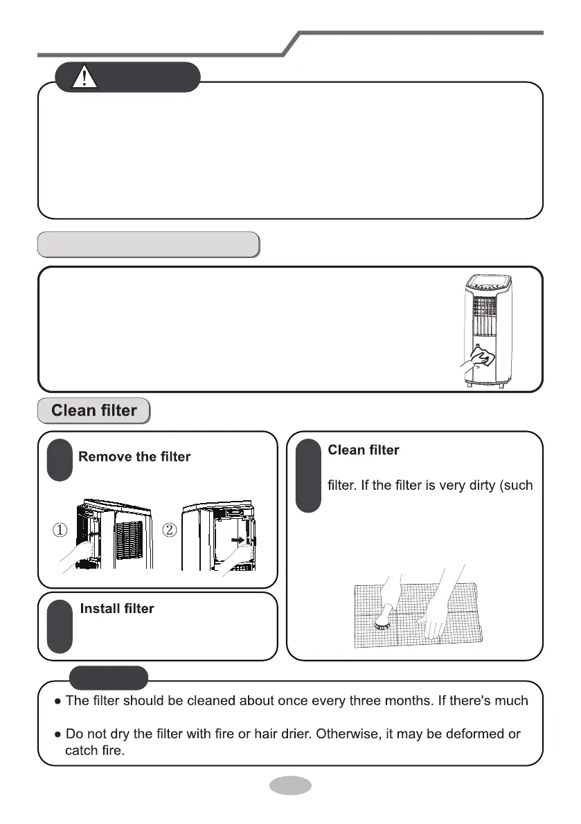 Do not wash air conditioner with water. Otherwise, it may cause electric shock.