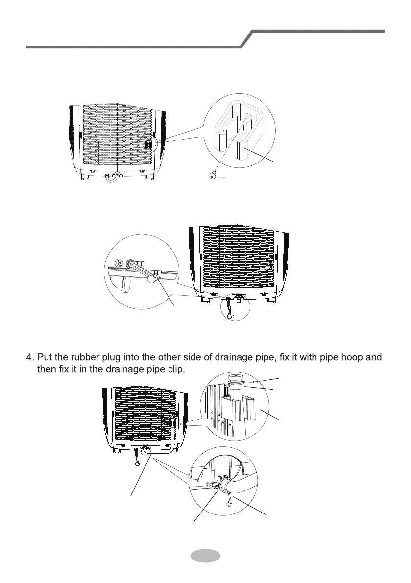 3. Put the drainage pipe into drainage port and screw it up, and then bind it with