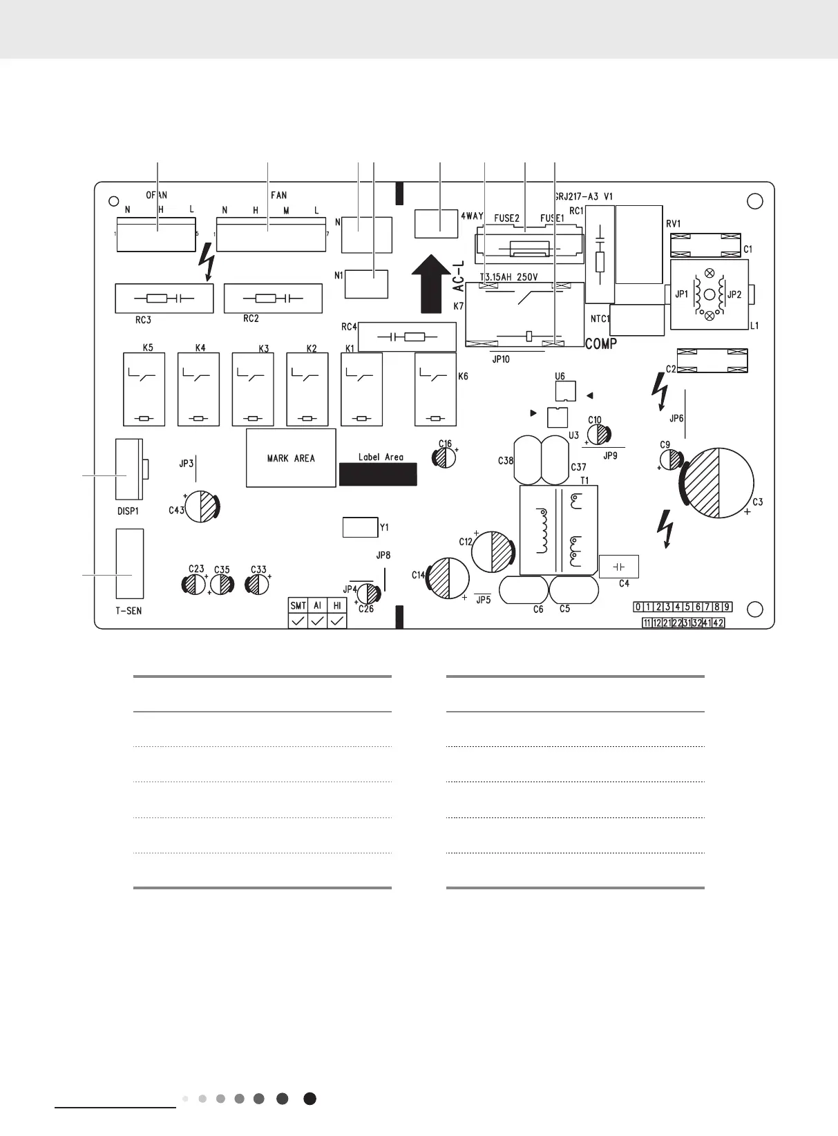 1 Control terminal of outdoor fan motor 6 Live wire terminal