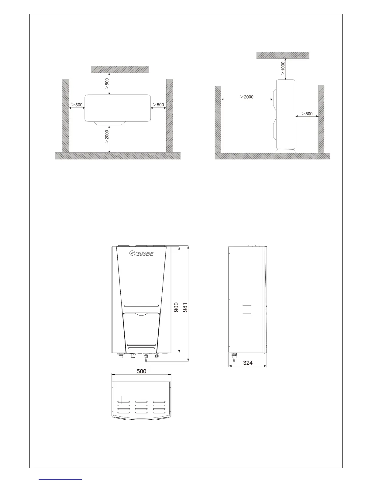(3) Requirements on installation space dimension of unit’s bodies are shown in following drawing.