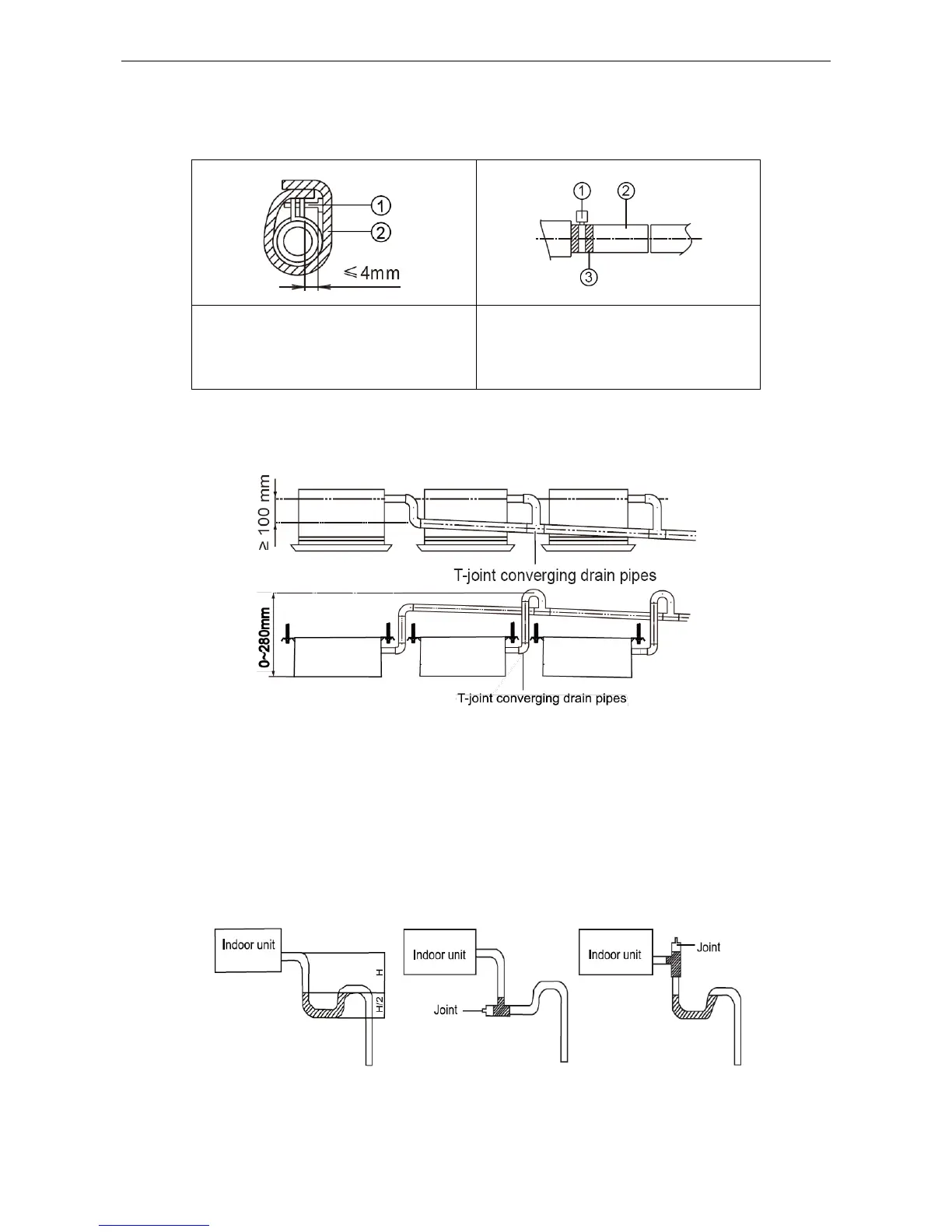 (3) When unifying multiple drain pipes, install the pipes as Figure 3-1-51. Select converging drain