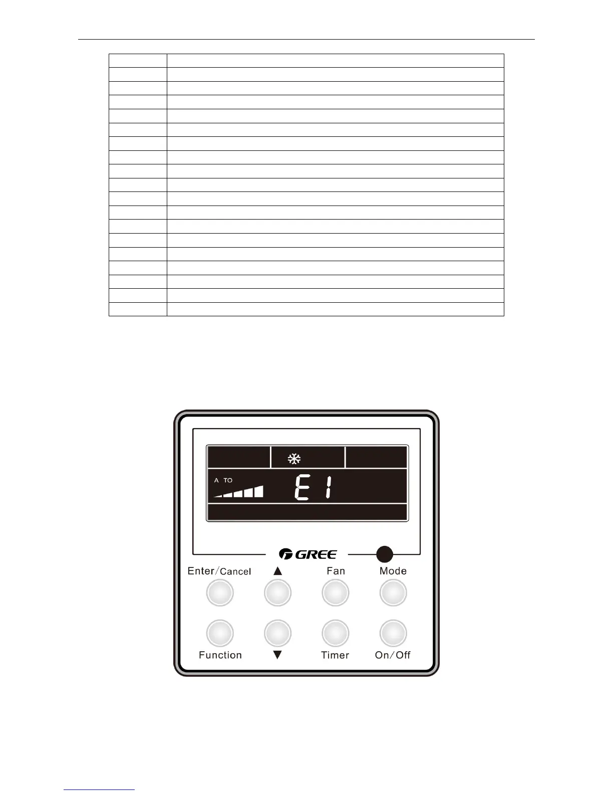 When there is a malfunction during operation, error will be displayed on the temperature displaying