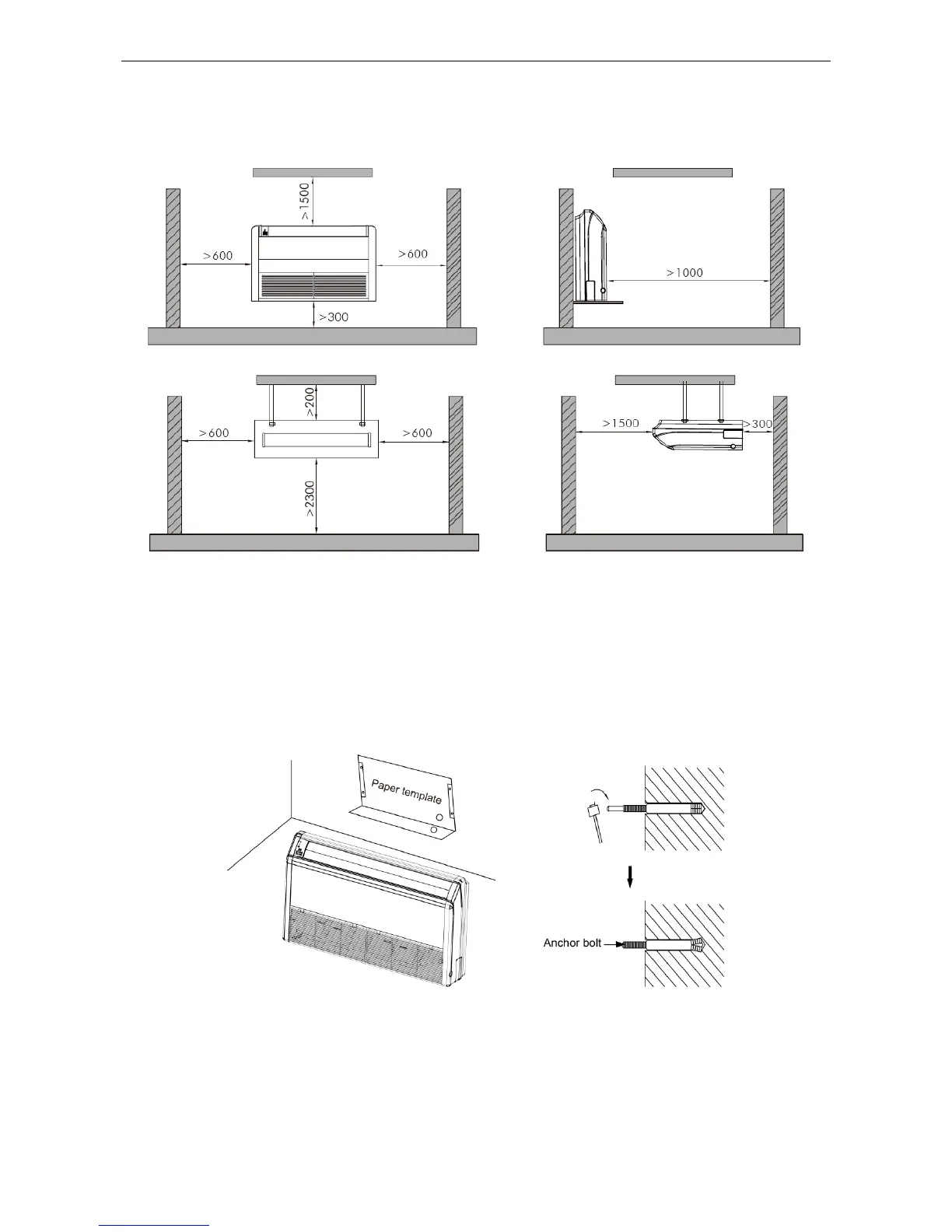 (5) The space from the unit to the ceiling should be kept as much as possible so as for more