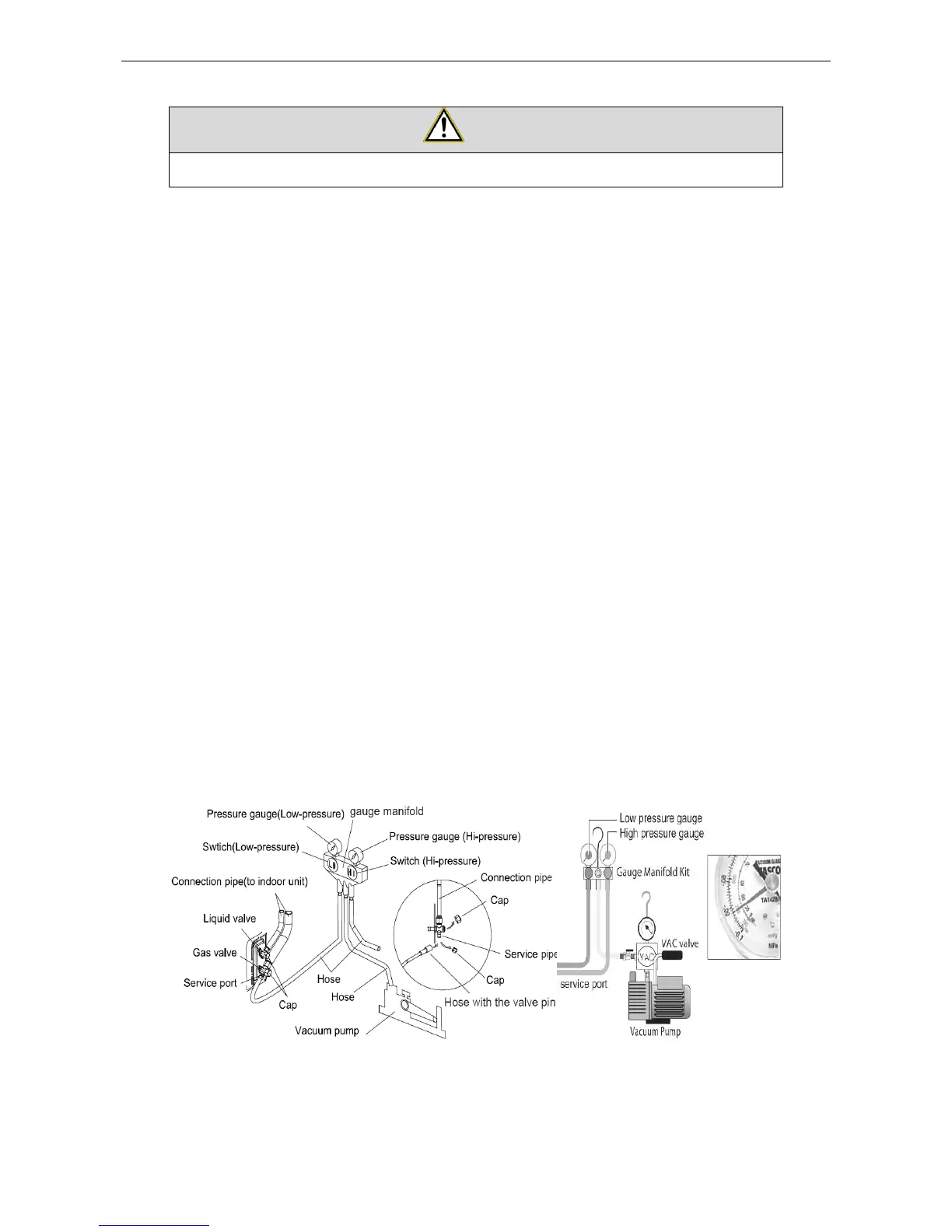 pipe when removing the hose. Note that the gas and liquid valve can be opened fully only after