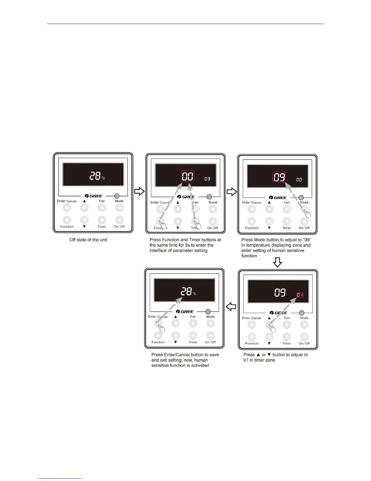 human sensitive function is activated. The unit will memorize this setting status. The setting value will be