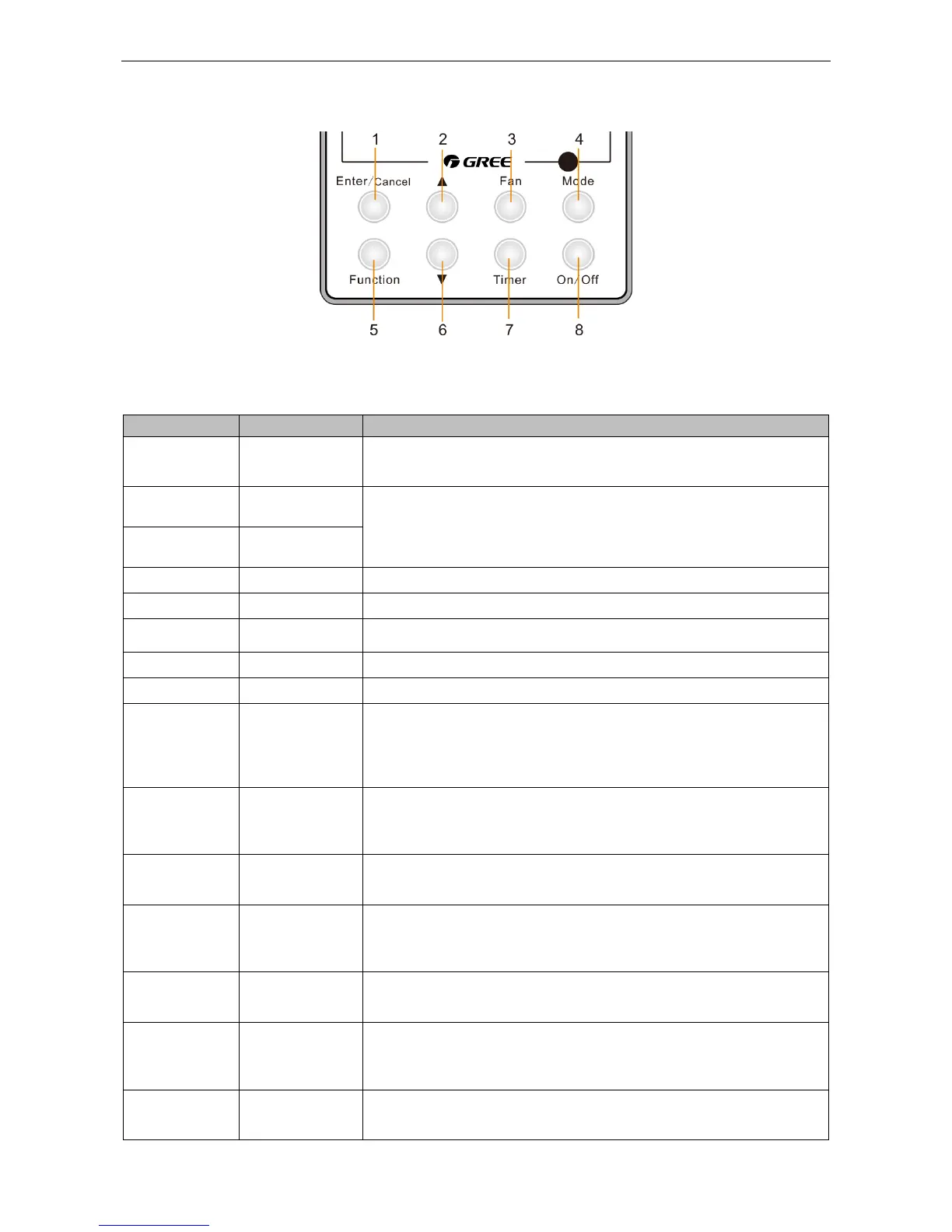 Table 2-3-2 Instruction to buttons of wired controller
