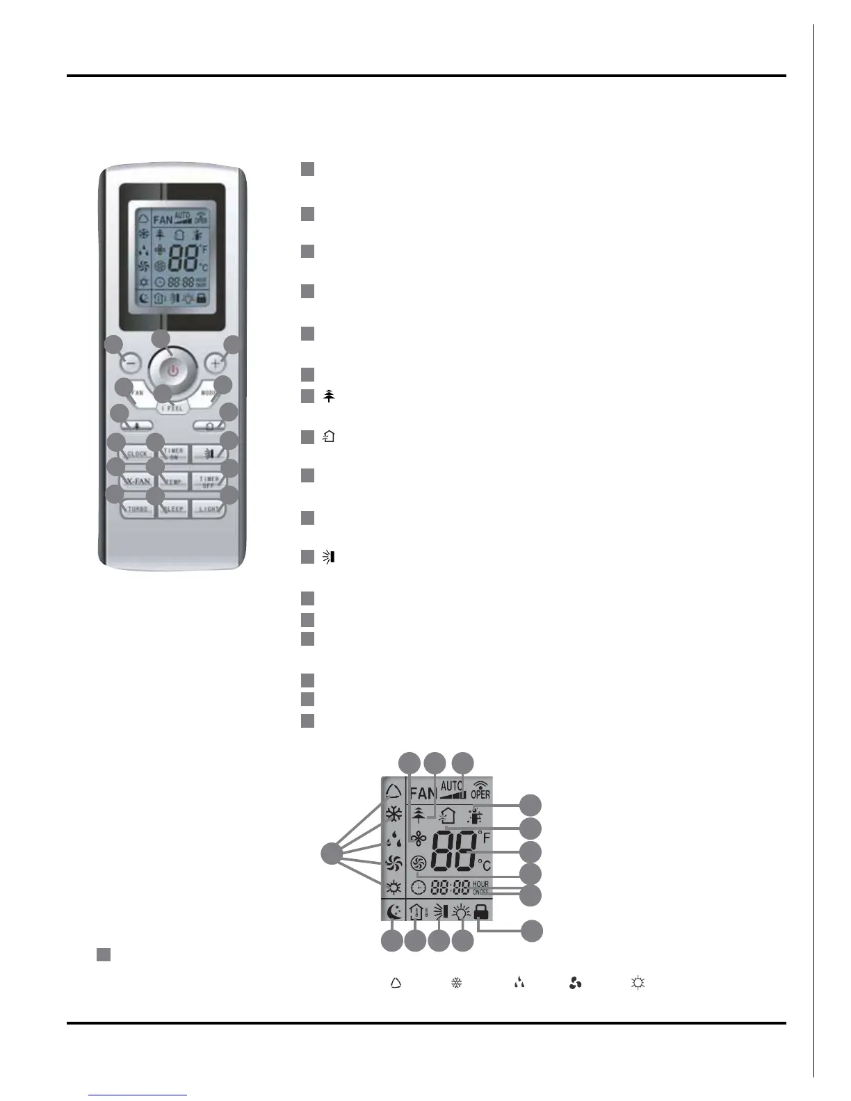 Press it to select operation mode (AUTO/COOL/DRY/FAN/HEAT).