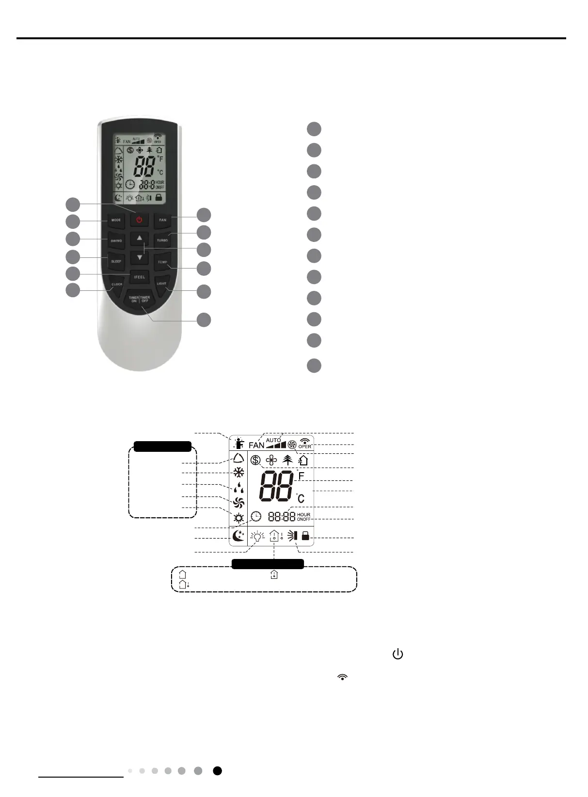 of remote controller (If timer on, timer off and light functions are set, the corre- sponding icons will be displayed on the display of