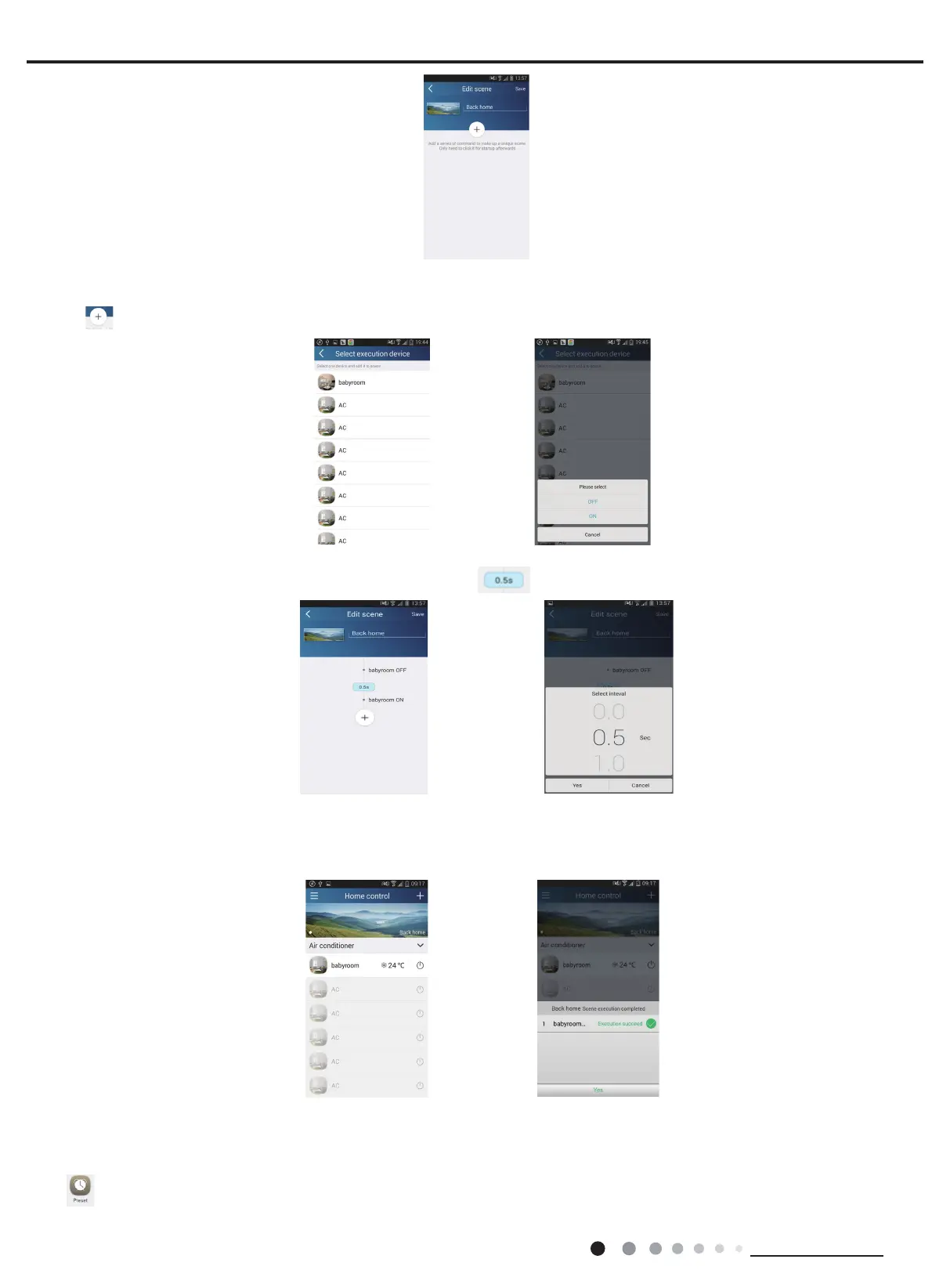 Tap "Save". Tap the scene picture displayed in "Home control" home page to send the command. Then the scene "Back home" will be in