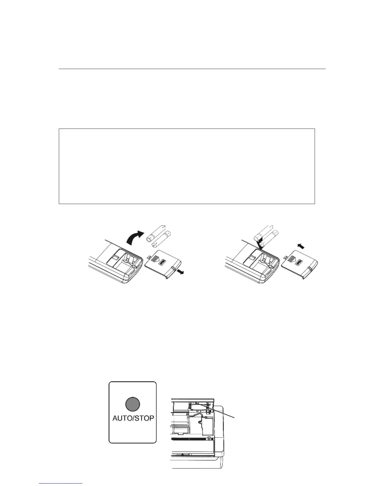 • If the remote controller will not be used for a long time, remove batteries to prevent