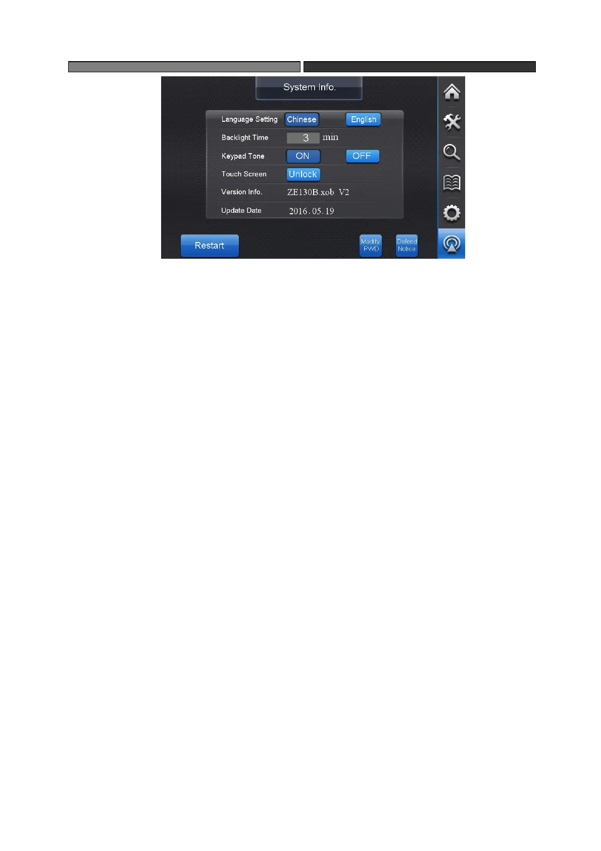 restarted. In order to ensure system’s stable operation, please restart the touch screen when